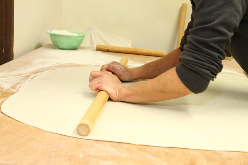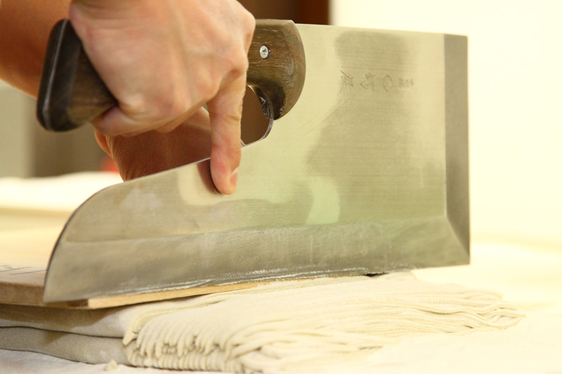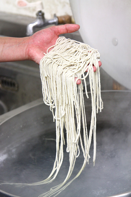 打ってからすぐに茹でればいいのですが、打ったばかりの蕎麦は、まだ蕎麦粉と水が十分に馴染んでいない為、湯に入れた蕎麦が浮いてきてしまい、釜の中でうまく対流しません。